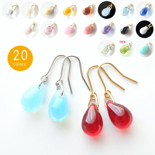 【ワンコイン☆100円】可愛いカラー20色♪チェコガラスぽってりドロップのシンプルピアス【メール便OK】