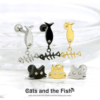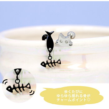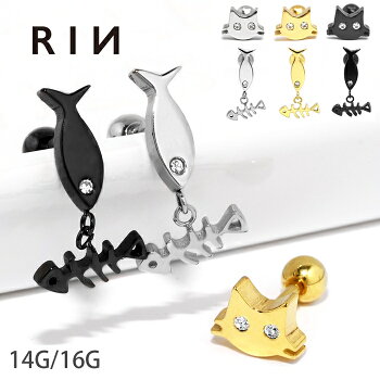 【楽天SOY4年連続受賞】ボディピアス 16G 14G 猫 ネコ 魚 サカナ チャーム 揺れる ジュエル 骨 ホネ サージカルステンレス 金属アレルギー対応 シルバー ゴールド ブラック 軟骨ピアス キャッチ かわいい 可愛い ユニーク 個性的 レディース ボディーピアス 片耳用 凛 RIN