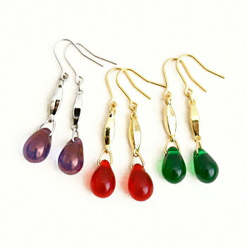 包装 簡易包装 サイズ ピアスホールからの長さ:約3.2cm 素材 チェコガラス 約9×6mm、金属部分素材:メッキ(真鍮) スタッフコメント 可愛らしいドロップ形のチェコガラスをシンプルなピアスにしました。