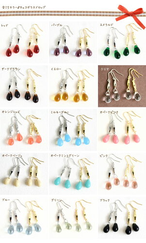 【値段もかわいい☆200円】15カラー♪チェコガラスドロップのピアス