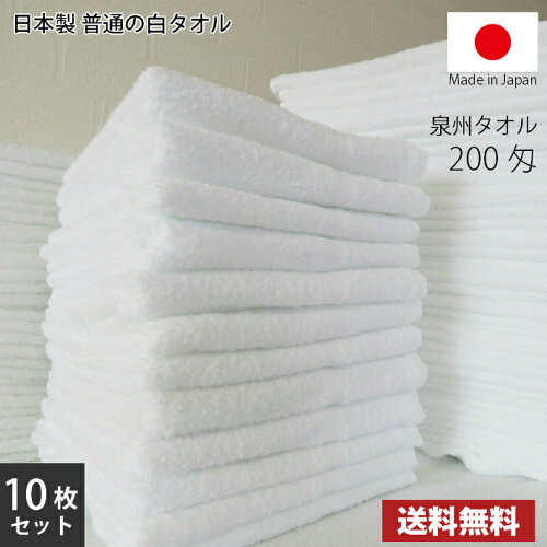 【送料無料】10枚セット 日本製 泉州 白タオル 200匁 / タオル 普通のタオル 白いタオル 業務用タオル フェイス 白 ホワイト 業務用 雑巾 薄手 まとめ買い 国産
