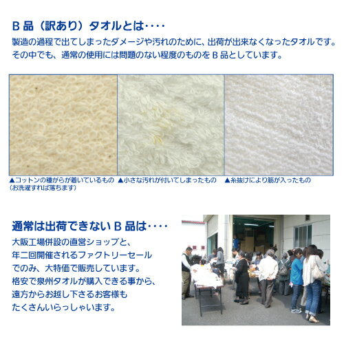 ※ご注意 ●B品タオルは、若干のダメージや小さな汚れ等がございます。