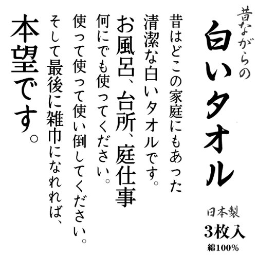 【商品情報】●商品説明昔はどこの家庭にもあった清潔な綿100%の白いタオルです。