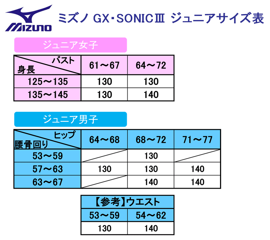 メーカー MIZUNO ミズノ(ミズノ株式会社) 型番 N2MB6002 商品名 GX-SONIC3-MR ジュニア男子 ハーフスパッツ カラー 92:ブラック×ブルー 96:ブラック×レッド 素材 SONIC LIGHT-RIBTEX(ナイロン67%・ポリウレタン33%) SONIC LIGHT-HP(ナイロン65%・ポリウレタン35%) ■GX-SONIC3-MR 素材説明 SONIC LIGHT-RIBTEX 表面摩擦抵抗を抑える新しい布帛素材。